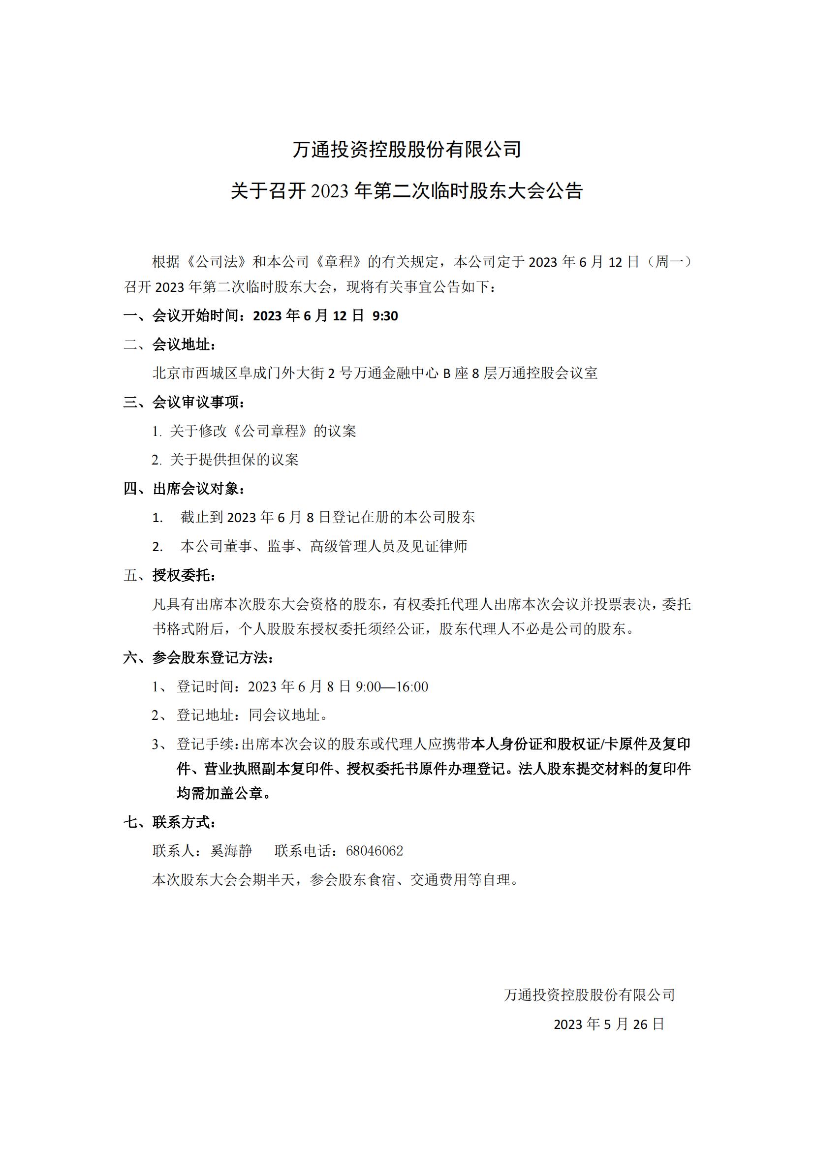 关于召开2023年第二次临时股东大会公告